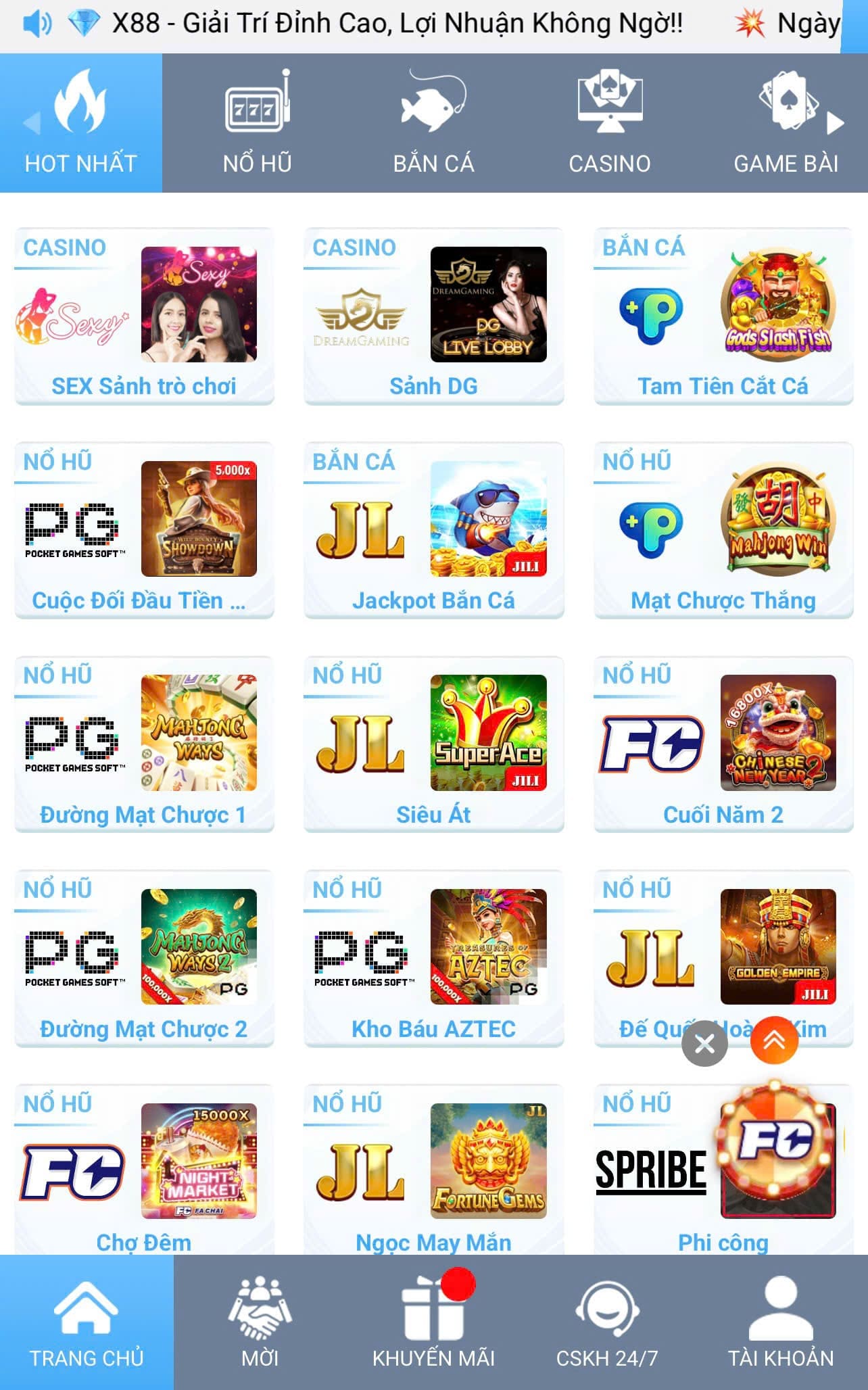 Các bàn cược Bắn cá – Slotgame tại x8804 com cực đa dạng trò chơi, tỷ lệ nổ hũ tốt nhất thị trường. Ngoài ra người chơi còn được Nhà cái hoàn lại 5% tiền cược thua mỗi ngày tại đây.