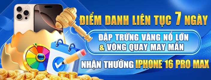 Nhà cái x8804.com tặng “Trứng vàng may mắn” cho thành viên đăng nhập đủ 7 ngày liên tiếp. Đập trứng nhận phần thưởng bí ẩn, hấp dẫn. Trong đó có iPhone 16 Pro Max cực đẳng cấp.
